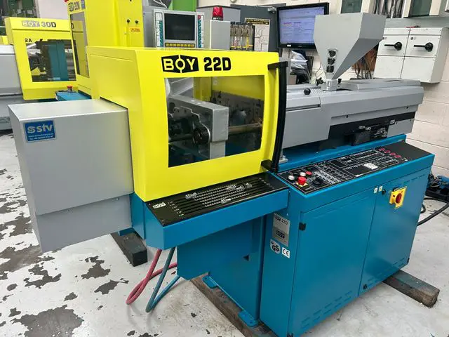 Newly refurbished, we have this BOY 22D. The machine is a compact 22 tonne clamp machine with a very easy to use controller with the Dipronic system. These machines have stood the test of time and remain very popular as they are simple to use, cheap to repair and reliable. Fitted with a 22mm diameter screw, which gives a max shot weight PS (g) of 27.