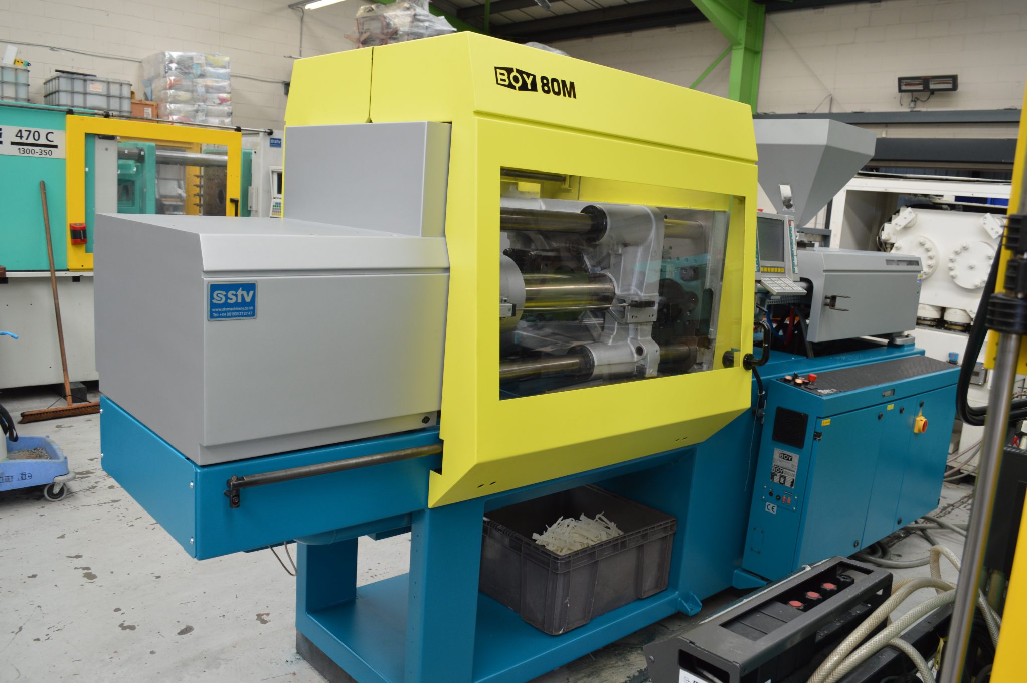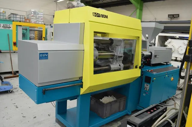 Now fully refurbished by our team at STV Machinery in Wellingborough, Northamptonshire, is this high precision BOY 80M injection moulding machine. The BOY 80 is one of the most compact 80t clamp machines around, a great allrounder, fitted with the Procan 2 controller and 42mm diameter screw, which gives a shot weight of 179 (PS)g.